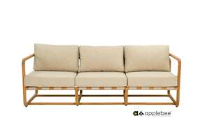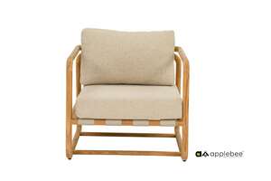 Weer een mooie parel in de Applebee collectie, de Dolce lounge. Een prachtig rond frame van SVLK teakhout met een zitting van belt in de kleur Ecru. Uiteraard weer uitgevoerd met de BeeWett kussens in de kleur Cotton Flower. De Dolce collectie bestaat uit een lounge stoel, 2-zits sofa, 3-zits sofa en een bijpassende salontafel.