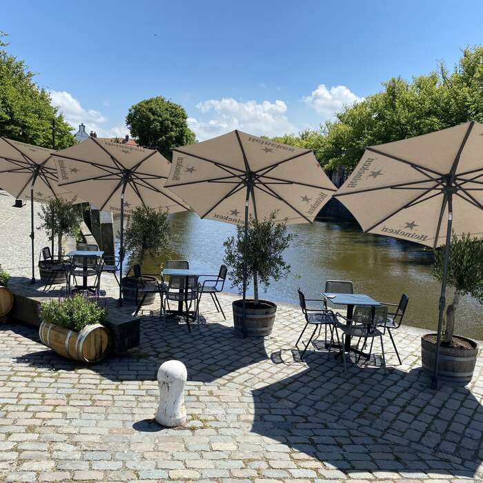 4 x Glatz smart parasol Ø250cm met logo Heineken aan de haven
